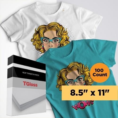 T Gloss Heat Transfer Paper gives inkjet or laser transfers a high gloss. This special material is applied on top of our heat transfer papers and must be applied by Heat Press only!
